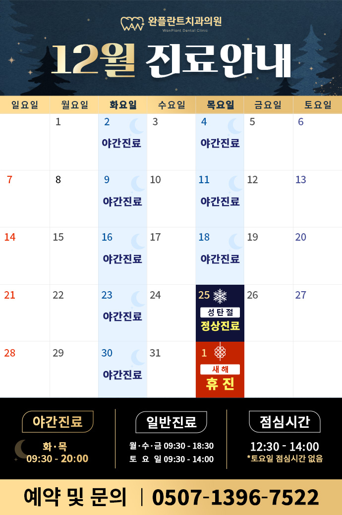 *12/25(9:30~18:30)* 크리스마스 정상진료, 야간진료X